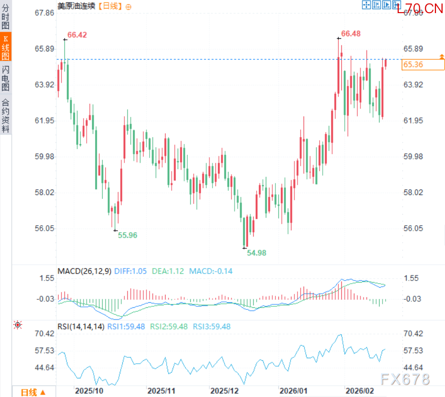 汇通财经APP讯——周四(2月19日)亚市时段,美原油价格震荡走强,现交投于每桶65.35美元附近,日内涨幅约0.45%,周三油价飙升逾4%,因美国副总统万斯公开表示,伊朗在本周核谈判中未能回应美方核心“红线”要求,特朗普总统保留动用军事力量的权利,市场地缘风险溢价急剧回升。