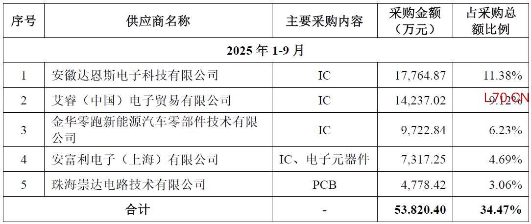 2025年前9月,力高新能的第二大供应商为金华零跑新能源汽车零部件技术有限公司,而该公司正是零跑汽车的全资子公司;与此同时,零跑汽车又是力高新能的重要客户,公司的BMS产品最终配套零跑旗下多款车型。这就形成了一种异常的格局:零跑汽车既是力高新能的核心客户,又是其主要供应商,双方存在“双向交易”的深度绑定关系。