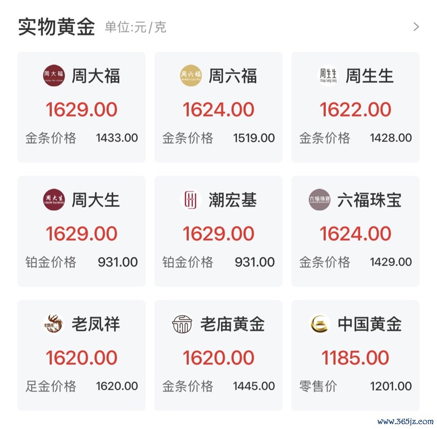 3月2日各大品牌金饰价格。