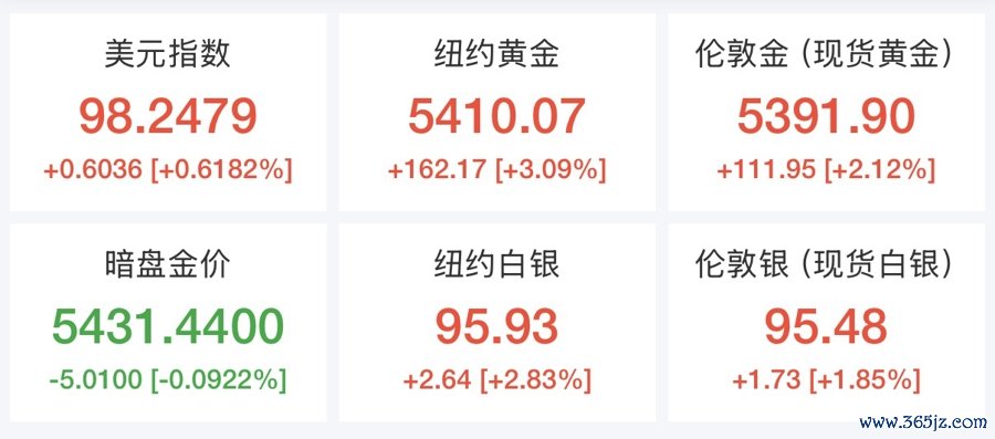 金价冲破5400美元
