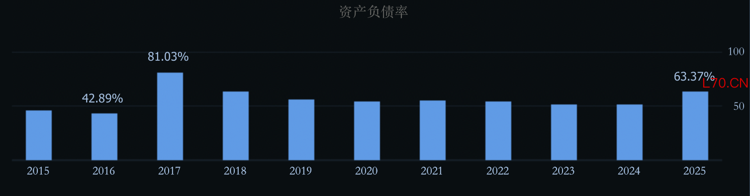 受此影响,工业富联2025年末的资产负债率,从年初的51.77%悄然攀升至年末的63.37%,创下自2019年以来的新高。