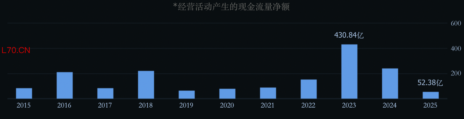 在营收与净利润大幅增长的背景下,工业富联的经营活动产生的现金流量净额却出现了断崖式下跌。2025年,该数值仅为52.38亿元,相较2024年的238.2亿元,降幅高达78.01%。