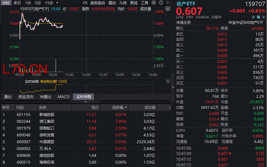 热门ETF方面,全市场唯一跟踪中证800地产指数的华宝基金地产ETF(159707)场内逆市上涨,环比放量成交超3500万元。
